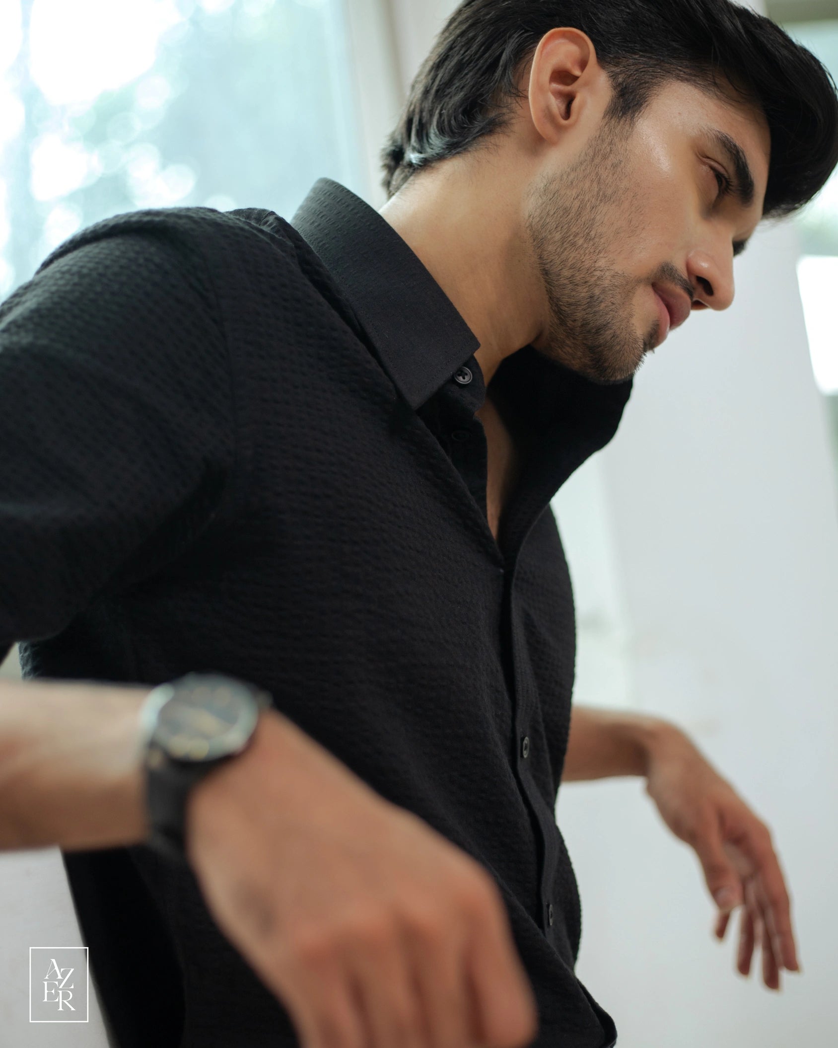 Breathable, textured, and designed to keep you cool without losing structure. Same AZER fit. Same hidden collar buttons. Just reimagined in fabrics made for lighter days.